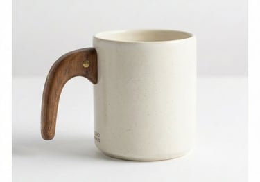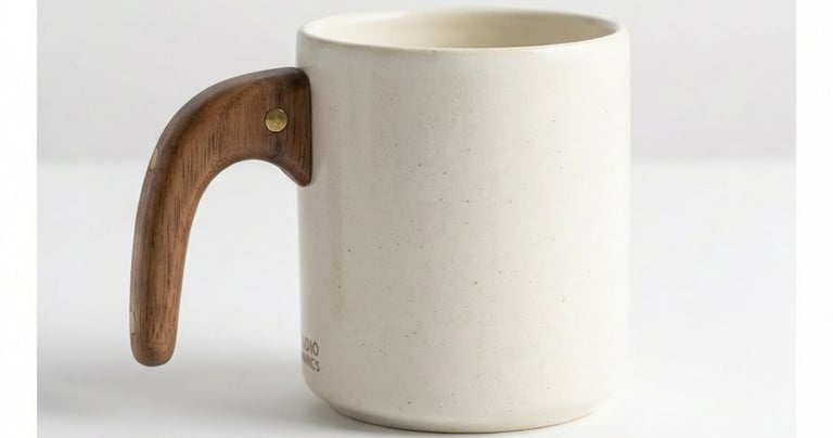 كوب انيق مصنوع من السيراميك بمقبض خشبي